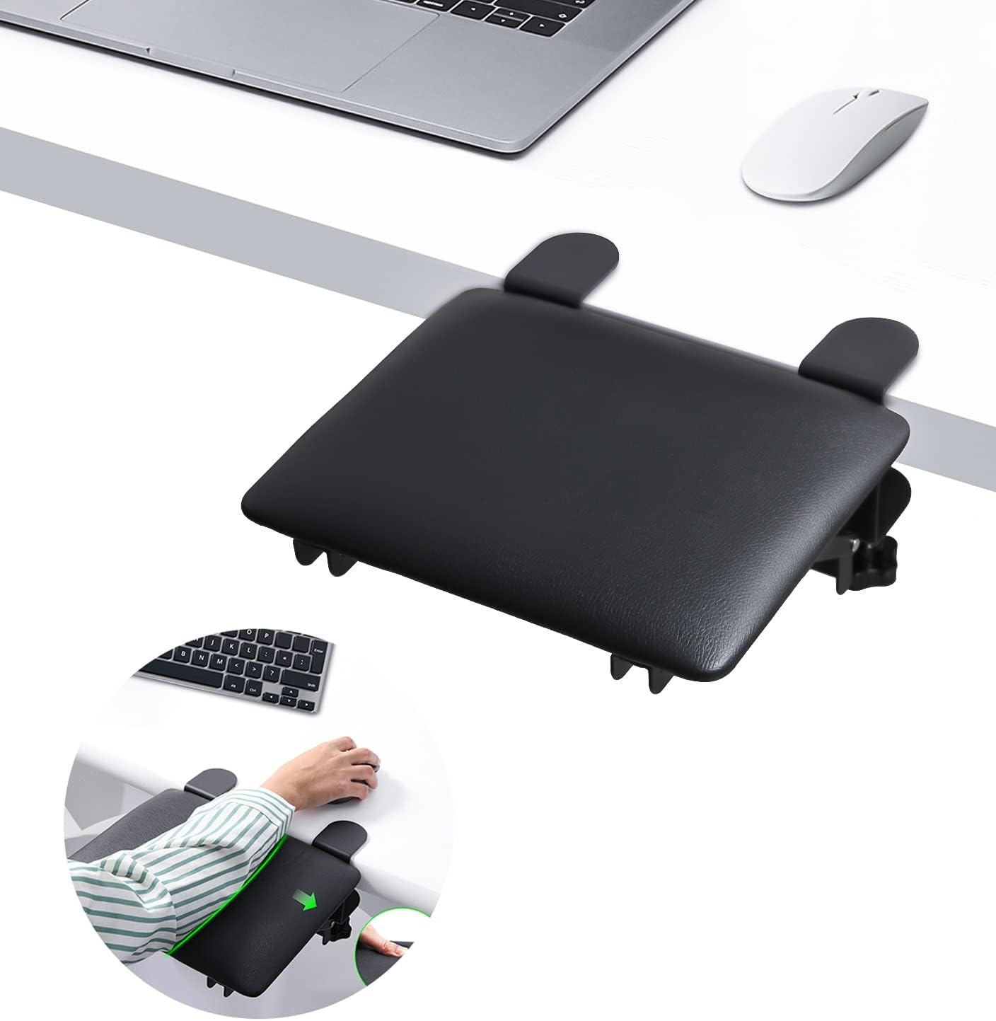 Ergonomska usnjena oporazagotavlja udobno podporo za podlaket, zapestje in komolec med delom ali igranjem iger. Primerna je za mize do 9 cm debeline, lahko pa se uporablja tudi kot opora za naslonjalo stola.