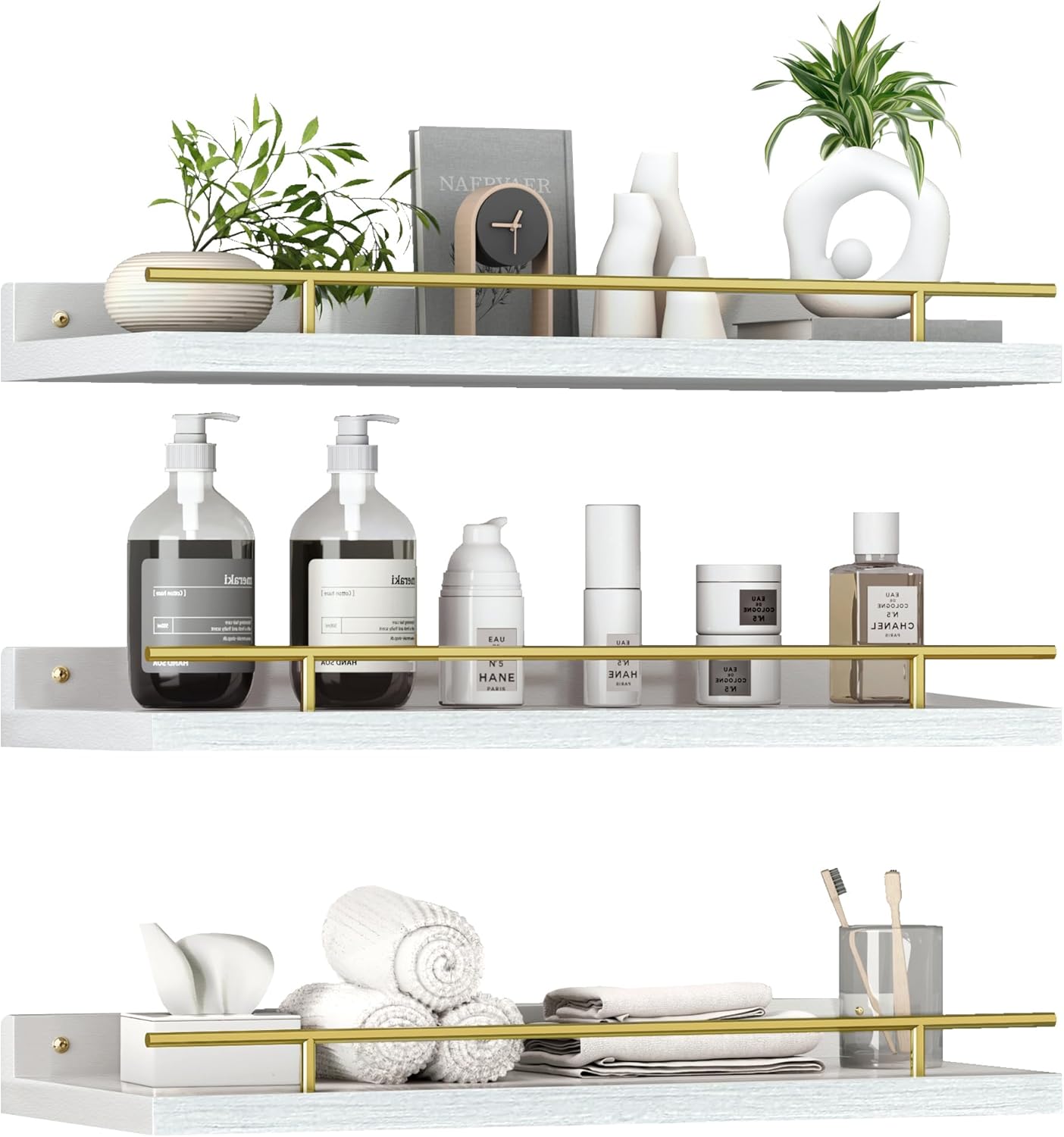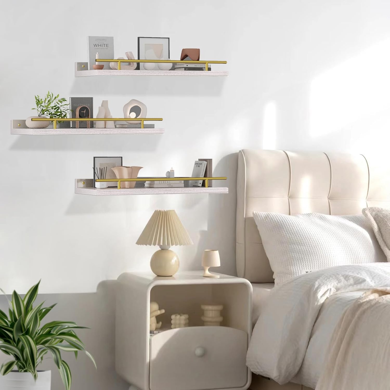 ZVZM komplet 3 belih lesenih polic z metalno ograjo